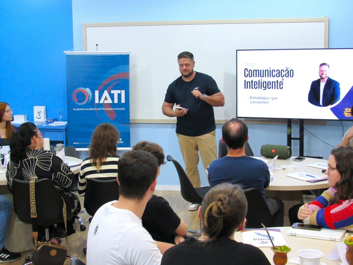 O encontro aconteceu na Unidade III da FEMA e teve como tema “Comunicação Inteligente para Vendas”, abordando uma das principais demandas identificadas no diagnóstico do RADAR IATI 2026: o fortalecimento da estrutura comercial das empresas incubadas. A programação iniciou com a saudação da Diretora das Faculdades Integradas Machado de Assis, Mariel S. Haubert, seguida da abertura conduzida pela Coordenadora da IATI, Graciela Borges Frainer, que apresentou os objetivos e a proposta do programa. O evento também contou com a atuação da Supervisora Acadêmica e Coordenadora de Inovação e Tecnologia da IATI, Denise Felber Chaves, que integrou a organização do encontro, reforçando o compromisso institucional com o desenvolvimento do ecossistema empreendedor.