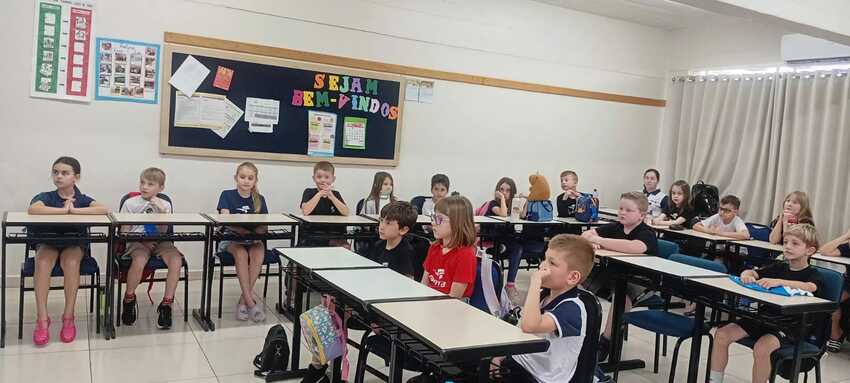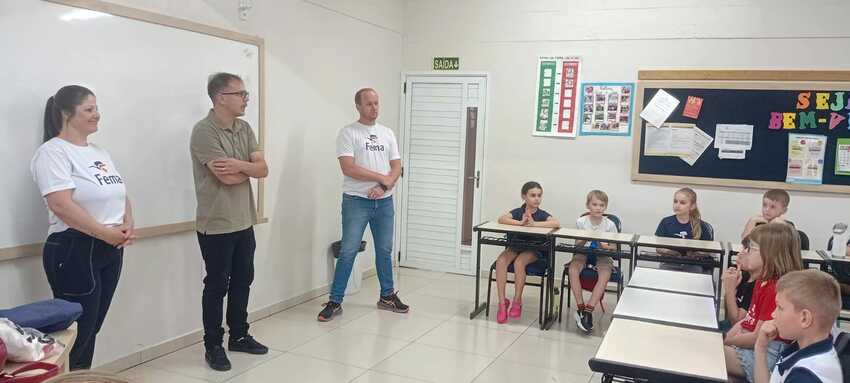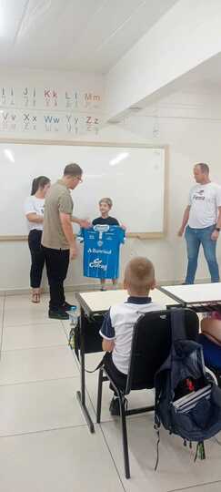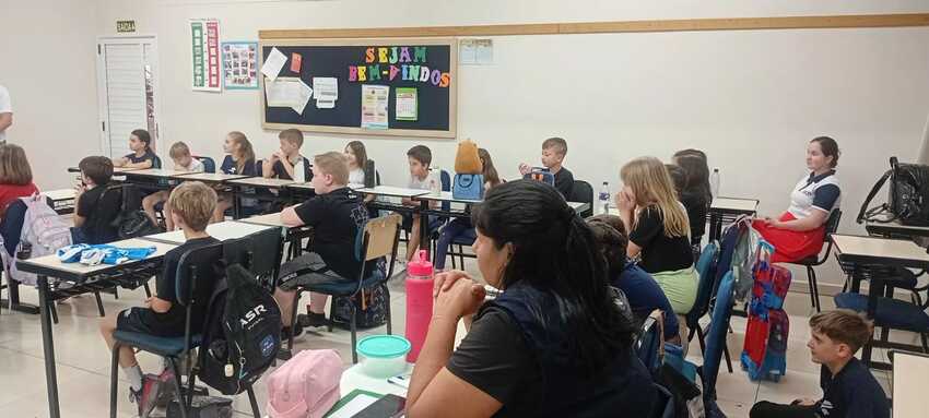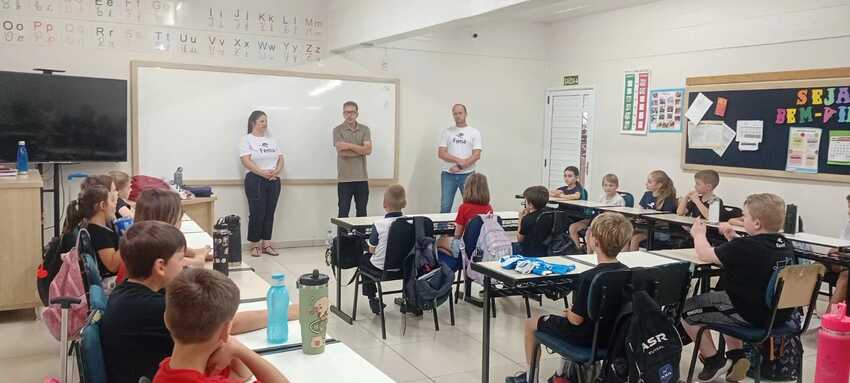 A turma do 2º C recebeu uma visita muito especial! Os pais embaixadores Rodrigo Rafael Kreutz e Elis Regina Kreutz estiveram na escola acompanhados do ex-jogador do Internacional Jardel Lauermann, que compartilhou uma conversa inspiradora com os alunos.