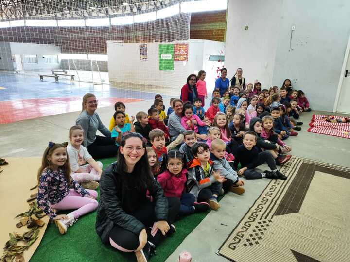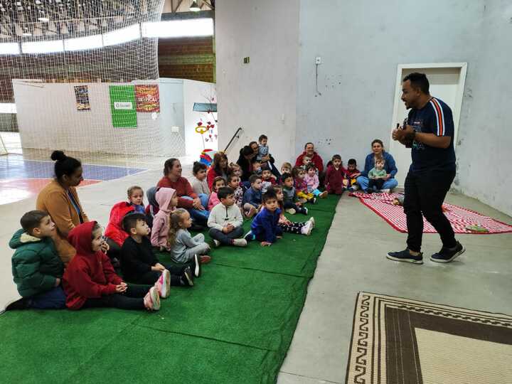 Crianças, em Porto Mauá, com momentos cheios de encanto, leitura e diversão.