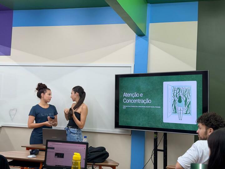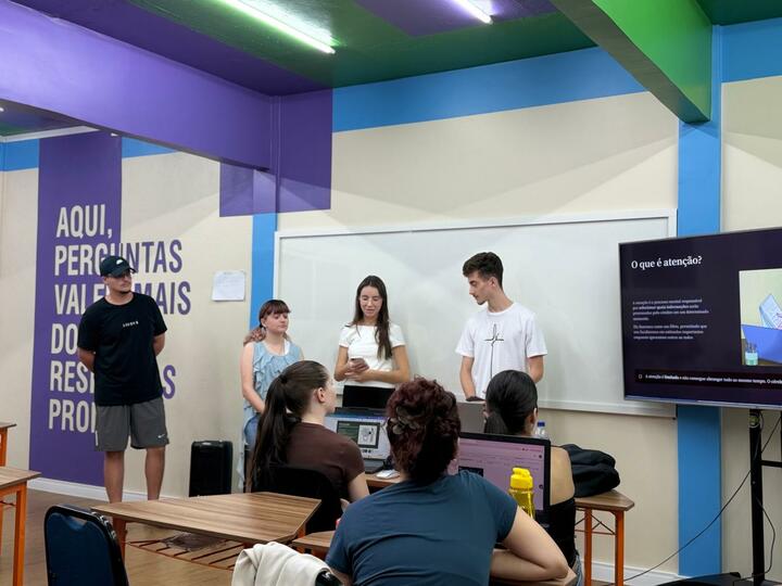 No dia 26 de março de 2026, os acadêmicos do primeiro semestre do curso de Psicologia da FEMA participaram de uma atividade prática na disciplina de Processos Psicológicos Básicos, com foco no estudo da atenção e da concentração. A proposta desafiou os estudantes a irem além da teoria: organizados em grupos, eles foram responsáveis por idealizar, planejar e executar experimentos relacionados ao tema. Desde a construção dos materiais até a condução das atividades em sala, os alunos protagonizaram todo o processo, exercitando autonomia, criatividade e pensamento científico. A atividade foi mediada pela docente e psicóloga Cris Aline Krindges, que acompanhou o desenvolvimento dos experimentos e estimulou a reflexão crítica durante toda a prática. Durante as apresentações, os acadêmicos compartilharam seus experimentos com os colegas, proporcionando uma experiência imersiva e colaborativa. A vivência permitiu que conceitos teóricos fossem percebidos na prática, facilitando a compreensão de como a atenção e a concentração se manifestam no cotidiano. Mais do que uma atividade em sala de aula, a experiência fortaleceu competências essenciais para a formação em Psicologia, como observação, análise de comportamento, comunicação e trabalho em equipe. A iniciativa reforça o compromisso da FEMA com uma formação que integra teoria e prática, preparando profissionais capazes de compreender e atuar de forma sensível e crítica diante das complexidades do comportamento humano.